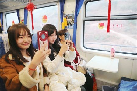 活动进行期间,青年志愿者还为旅客们送上了春联、福字,把新春的祝福传递到了车厢的每个角落。