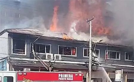 2月12日上午,智利南部巴拉斯港口市中心的“中国商城”发生火灾。智利中文网报道配图
