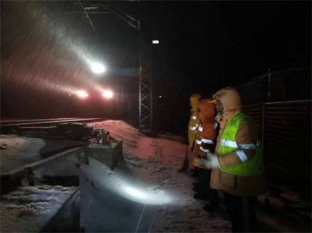 2月20日8时许,上海局集团启动扫雪除冰Ⅱ级应急响应,持续做好低温雨雪冰冻天气防范应对工作。阜阳北直属站、徐州直属站、蚌埠直属站、徐州车务段、合肥电务段、徐州电务段等单位,第一时间组织开展站区、站台、道岔等关键部位扫雪除冰作业。当天夜里,徐州、合肥、南京等地机务段开行接触网除冰列车,对徐州、淮安、蚌埠等地多个高铁、普速区段进行接触网除冰作业。