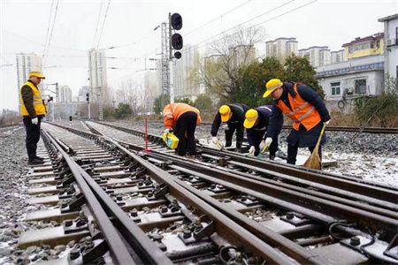 截至2月21日17时,本轮低温雨雪天气以来,长三角铁路部门已相继投入扫雪除冰人员逾1500人次,累计值守作业时间超过24小时。