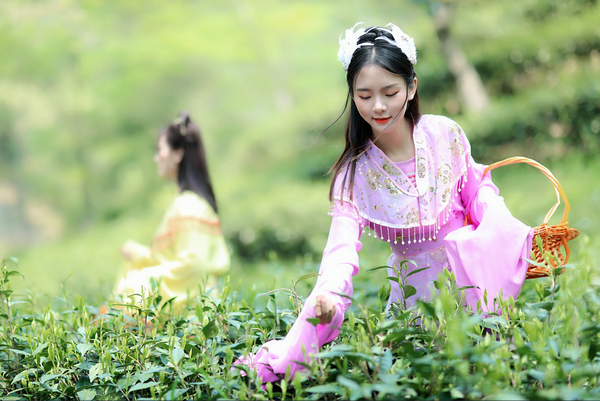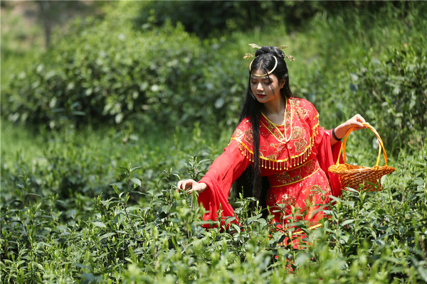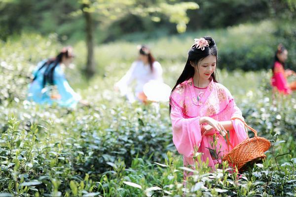 此外,当天的活动现场还开设了“茶趣打卡点”。七位美女模特身着古装,化身“七仙女”,漫步茶林小径,再现别具韵味的徽州风景线。