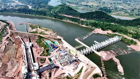 渠江风洞子航运项目船闸工程采用整体式结构设计,布置于枢纽区左侧,主体段由上、下闸首和闸室组成,总长265米,航槽净宽23米。建设期间,项目部统筹规划,克服种种困难,采用BIM建模模拟现场施工,为闸首、闸室结构顺利封顶提供了坚强保障,提前半年时间完成了船闸主体结构全线封顶。