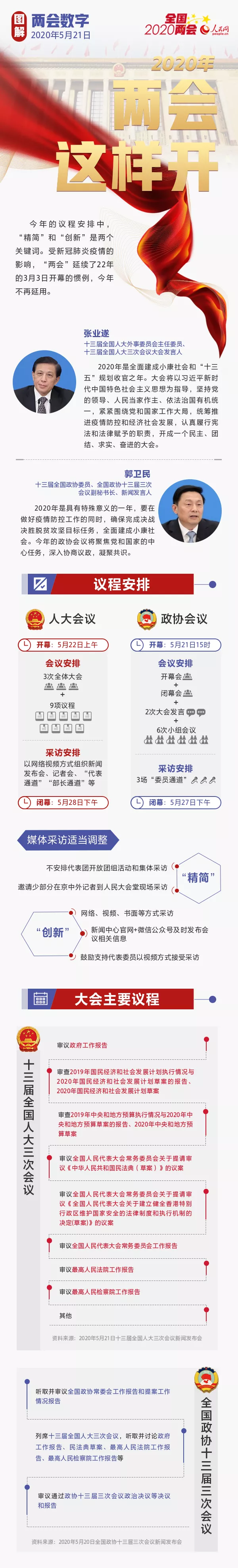 世界新闻网讯:十三届全国人大三次会议21日晚举行新闻发布会,大会发言人张业遂介绍了大会议程。至此,两会议程全部出炉。