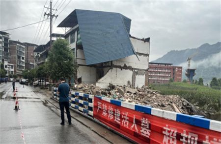 14日6时,现场监测人员李春发现1栋隐患房屋有倒塌风险。镇党委政府立即安排应急办负责人任林牵头组织人员将房前公路进行管控,禁止通行。6时33分,1栋临河隐患房屋后墙发生倒塌。8时33分,临河4间门面房发生倒塌。因预警和巡查监测到位,果断执行“三个避让”、“三个紧急撤离”要求,受房屋倒塌威胁的52名群众提前转移避让,成功实现人员零伤亡。