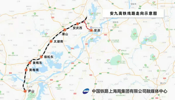 安九高铁是国家中长期铁路网规划“八纵八横”高速铁路主要通道京港(台)通道的重要组成部分,自新建的安庆西站引出,经怀宁县、潜山市、太湖县、宿松县进入湖北省境内,经湖北省黄梅县,于鳊鱼洲跨越长江至江西省九江市境内,引入既有庐山站。该条铁路跨安徽、湖北、江西三省,线路等级为双线客运专线,正线全长约170.9公里(其中安庆至黄梅段正线长约117公里),设计时速为350公里,全线设安庆西、潜山、太湖南、宿松东、黄梅东、黄梅南、庐山等7座车站。