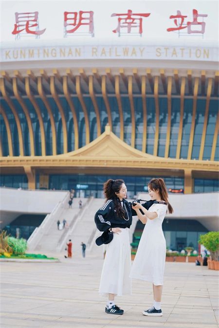 乘坐复兴号动车组从昆明南站出发,可以一路奔向西双版纳,乃至老挝万象。出发前,不妨在此拍照打卡留念,感受“彩云之南”的美丽,开启一段充满民族风情的美好旅途。