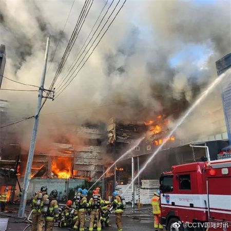 韩国大邱西区一工厂发生火灾,截至目前,没有人员伤亡的报道