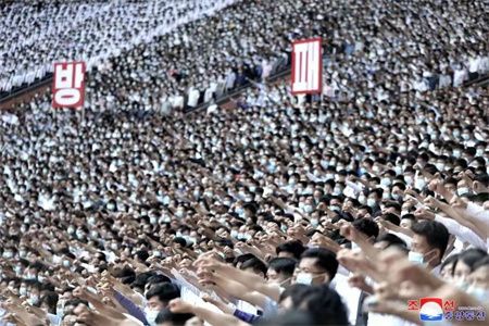 朝鲜平壤“6·25反美斗争日”群众集会图片 图源:朝中社网站