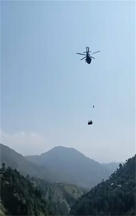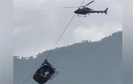 巴基斯坦一缆车电缆线断裂致8人被困空中,巴军方派直升机前往救援