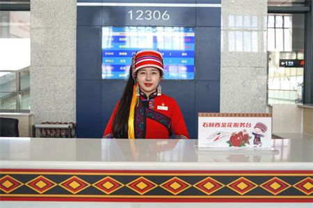 “玉龙•金花”服务台让来自五湖四海的旅客在丽江站都能感受到铁路的温馨服务和民族风情。