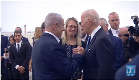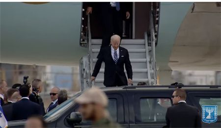 《以色列时报》直播画面显示,拜登乘坐的专机抵达以色列特拉维夫本-古里安国际机场