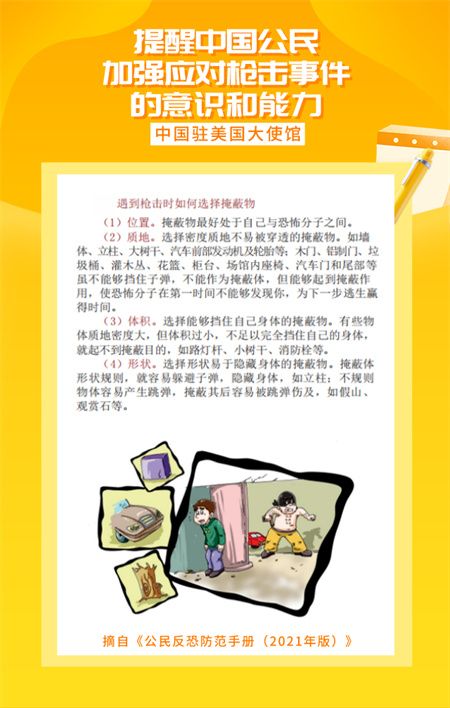中国驻美国大使馆:提醒中国公民加强应对枪击事件的意识和能力