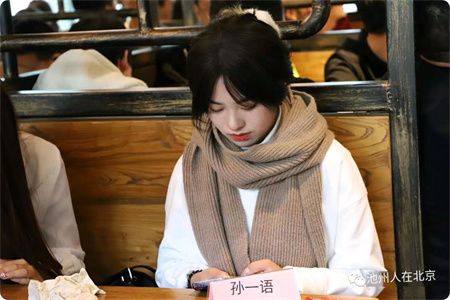 在热情洋溢和欢歌笑语中,在京的学子也纷纷自我介绍,相互认识,加强彼此的沟通和交流。最后由本次活动组织者俞杨,向各位在京学子介绍本次活动的初衷和意义:“十八年前我们北漂来京,当时举目无亲,特别期望能有家一般的温暖和照顾。一晃十八年,我们也已为人父母,看到现在的孩子就想起了当初的我们,所以努力将他们组织在一起,无论他们在生活上还是将来走上社会,如果有什么困难和帮助,我们作为在京的家人会像对待自己的孩子一样用心去帮助和照顾。也是将我们池州人的团结凝聚、互助友爱精神传承传递下去。希望你们志存高远,自强不息!!