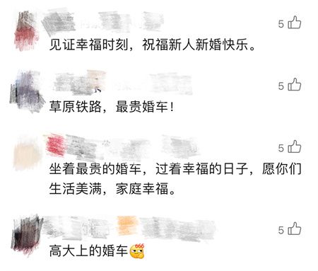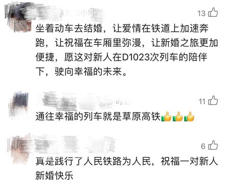 坐着高铁去结婚让爱情在万里铁道线上加速奔跑愿这对新人在中国高铁的见证下驶向幸福的未来。