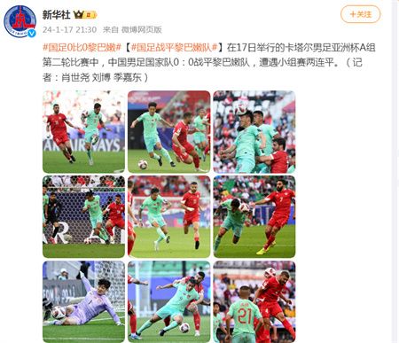 在17日举行的卡塔尔男足亚洲杯A组第二轮比赛中,中国男足国家队0:0战平黎巴嫩队,遭遇小组赛两连平。