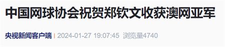 中国网球协会祝贺郑钦文收获澳网亚军