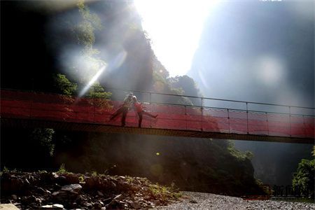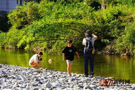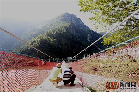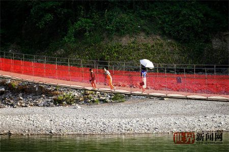 一泓碧水,泛起层层浪花,那新建的游步道蜿蜒地沿着清江穿过密林、怪石,雪照河电站下游一座吊桥在阳光下熠熠生辉......