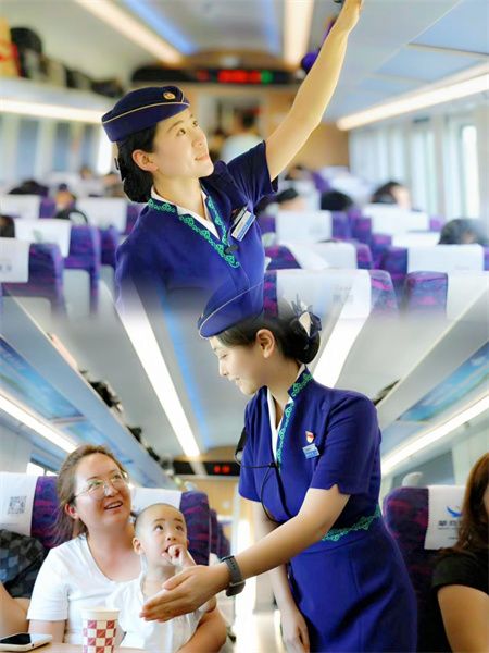 随着多个方向城际线的开通,由城际动车组连接的呼和浩特“1小时交通圈”不断拓展,为旅客提供了更加舒适便捷的选择。城际动车组内处处体现了暖心细节,车厢内配备了大件行李记号签、电茶炉、杯垫、爱心呼叫器等服务设施。
