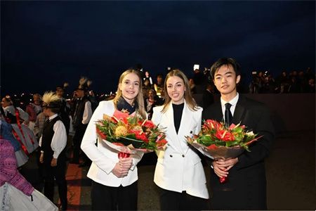 两名身着民族服装的匈牙利儿童向习近平主席夫妇献上面包和盐,用传统礼节欢迎最尊贵的客人。匈中双语学校的学生向习近平夫妇献花,并用中文说:“欢迎您来到匈牙利”。少年儿童跳起欢快的民族传统舞蹈查尔达什舞曲,向习近平表达最热烈的欢迎。