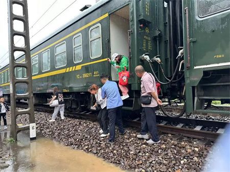 接到转移命令后,列车乘务组开始按照之前掌握的信息配合救援人员组织旅客转移,优先安排老人、妇女和儿童旅客下车。