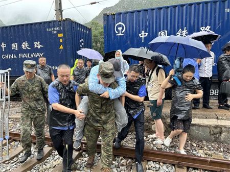 8月1日,两名旅客因为孩子需要在京就医,必须马上和医院取得联系。乘务员郭娇担心他们的安全,上午11点出发,陪着旅客穿过五个隧道,冒雨徒步近10公里,终于找到手机信号,顺利联系医院,也给家人报了平安。下午4点,三人平安回到落坡岭社区安置点。
