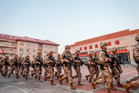 洒在官兵坚毅的脸庞上