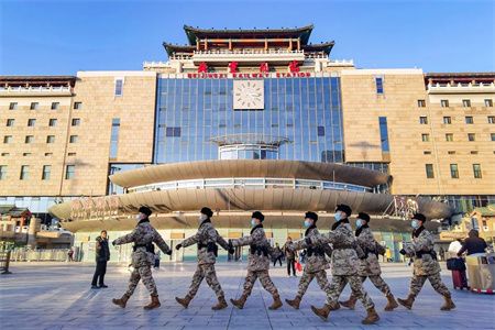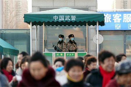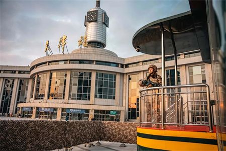 武警官兵为节日出行的人们