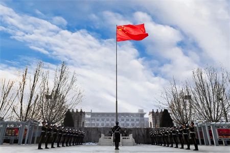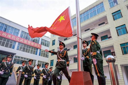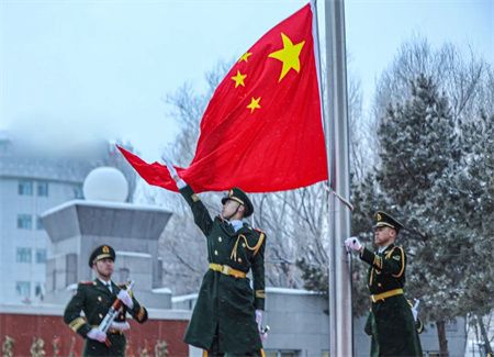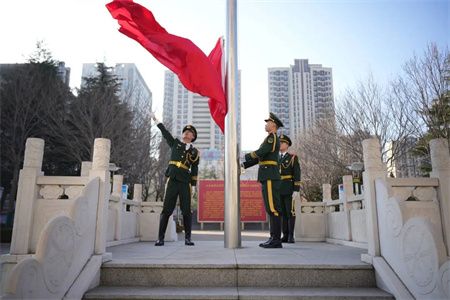 庄严的国歌声中冉冉升起