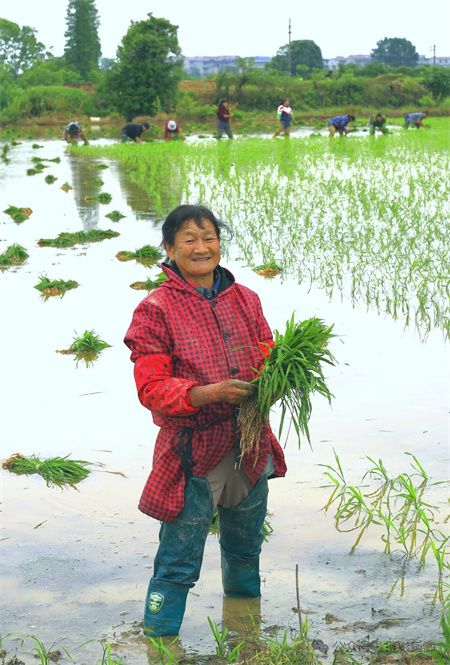 近年来,又萌生了“懒人式”的抛谷、抛秧,代替了过去的插秧。图片中的众人插秧,大都是田主雇来的,每人每天150元至200元工资,包吃两餐饭。(熊慧平)