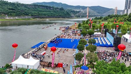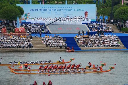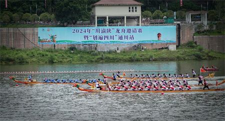 5月28日上午,州河塔沱段被追逐和欢呼“点燃”,2024年“川渝陕”龙舟邀请赛暨“划遍四川”通川站在这里鸣锣开赛。