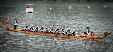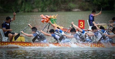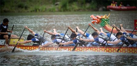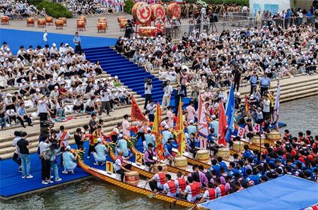 船桨翻飞、锣鼓齐擂。