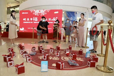 在“幸福套盲盒”游戏区域,观众只需要关注“安徽福彩”“芜湖福彩”微信公众号,即可获得数个圈圈,在指定区域即可参与套盲盒游戏,惊喜多多,礼品多多。在互动环节中主办方赠送的小礼品,则是这场活动的“主角”,有不少幸运观众获得婚庆彩票大礼包,而且中奖率极高,气氛爆棚。在刮刮乐购彩区域,参与观众现场刮奖,最高可中25万元现金大奖。