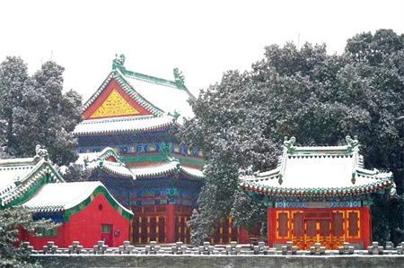 12月11日,北京迎来今冬初雪。一夜之间,故宫建筑群已被洁白包裹。琉璃金顶玉尘层叠、朱墙廊壁银星闪灼。极目远望,丹宸碧瓦与雪相接,与天一色。