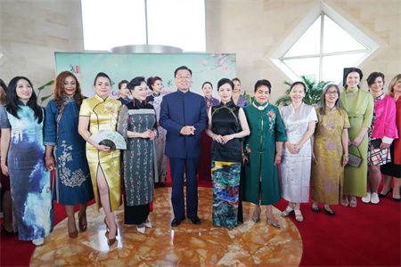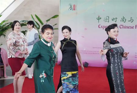活动安排嘉宾们挑选自己喜爱的旗袍试穿,造型师为嘉宾们打造了精美的中式妆造,让她们在镜中看到了不一样的自己。身着旗袍的嘉宾纷纷在使馆旋梯、花窗和画作前拍照打卡,留下旗袍带给她们的美好回忆和奇妙体验。身着旗袍的嘉宾们还被邀请走上T台秀场,尽显优雅自信,用时尚的语言表达文明交流互鉴之美,赢得全场不断喝彩。