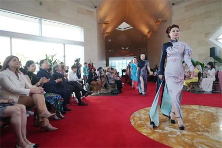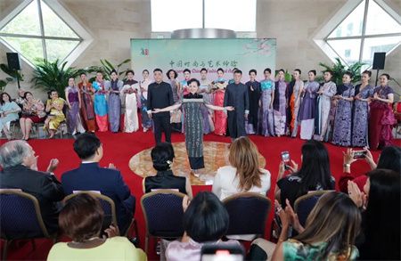 活动通过时装秀、旗袍舞、试装等多种方式,让嘉宾沉浸式领略中国时尚文化的独特魅力。200多套特别定制的旗袍面料考究、色彩典雅、设计新颖,20余名身着旗袍的模特化身为流动的艺术品。旗袍大秀中穿插中国舞蹈表演,华盛顿雪娟舞蹈团以曼妙的舞姿将旗袍的韵味展现得淋漓尽致。