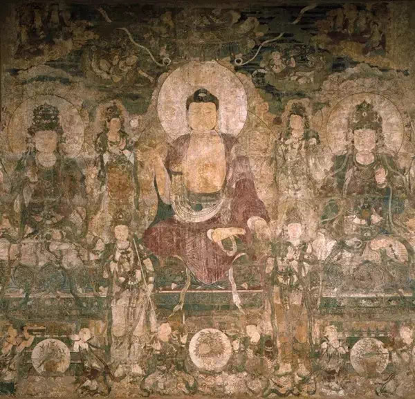 刚运抵美国,后大殿(大雄宝殿)东壁的《药师经变》就被纽约牙医赛克勒收购。这个牙医酷爱中国文物艺术品,也很富有,曾购买和收藏了大量中国文物。